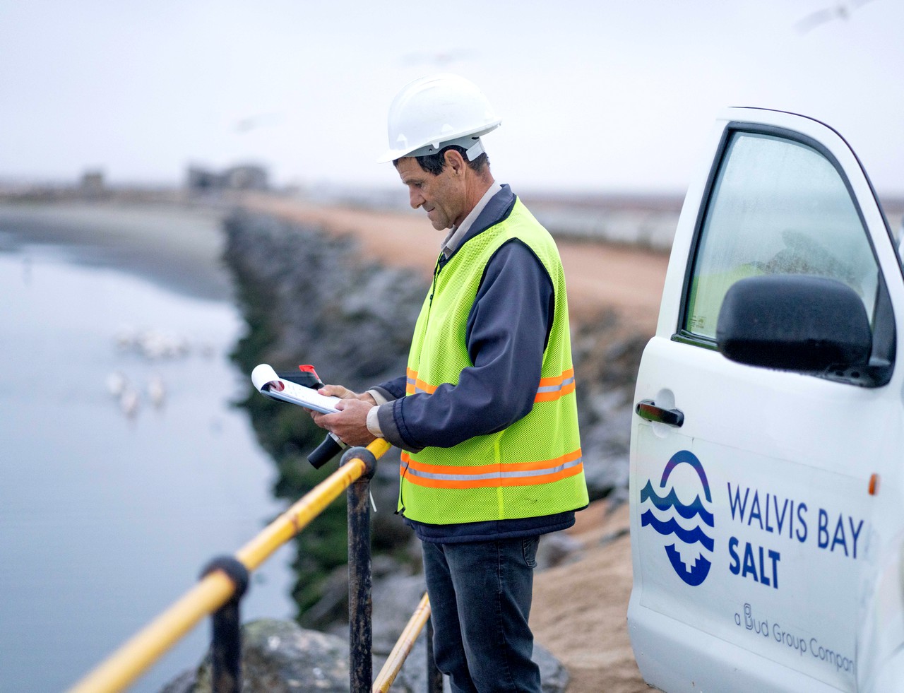 Walvis Bay Salt Holdings is attempting to stay ahead of the regulatory agencies and determines priorities and acts on opportunities for environmental improvement. Currently the company is investigating renewable energy options as well as more efficient transport options for export salt through the Namport harbour.