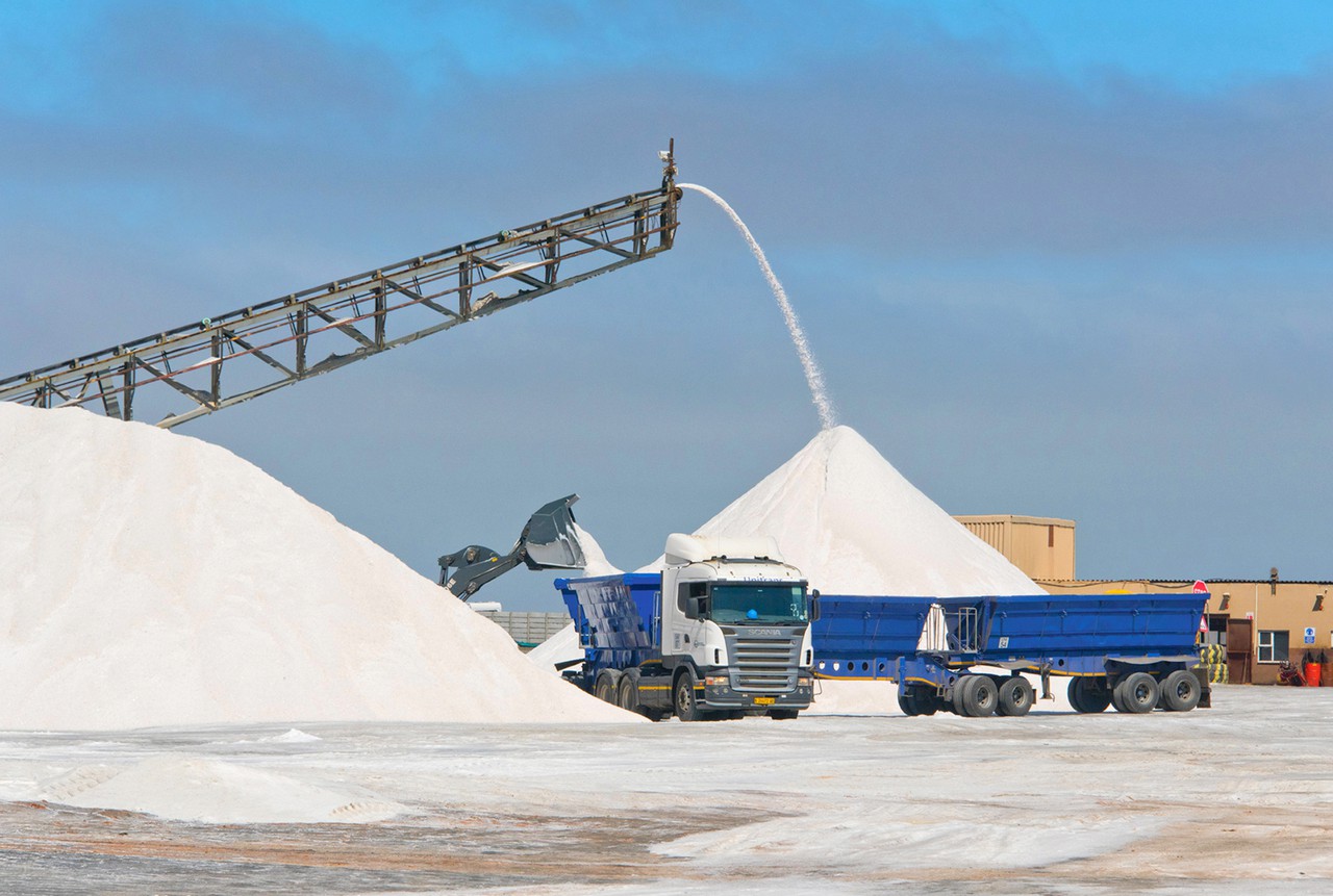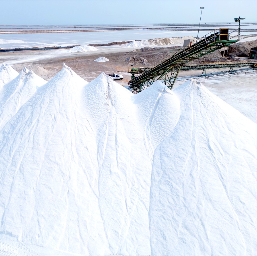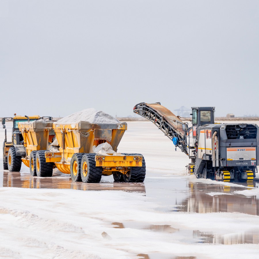 Once the salt crystals have grown to the required levels, the product is removed by mechanical harvesters and transported to a processing plant. Here, the raw product undergoes a process of upgrading, using dilute brine as washing medium. During the wash process impurities including calcium, sulphate and magnesium is removed. The final salt solution is then dried in a centrifuge and stored on a stockpile for further draining.