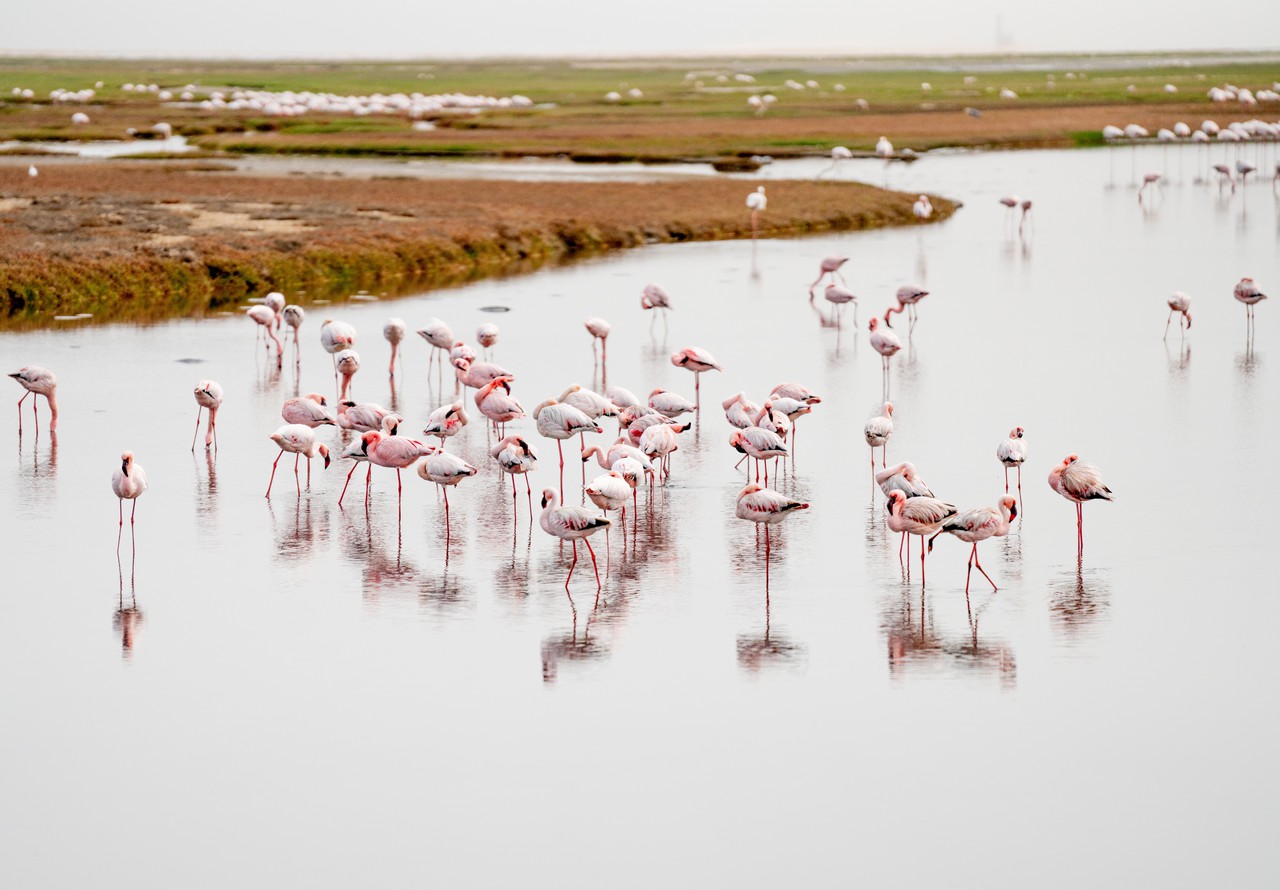 Our network of evaporation ponds situated in the Kuiseb river delta covers an area in excess of 5000 hectares and is surrounded by the Namib desert, Atlantic Ocean and Walvis Bay Lagoon. It comprises the largest part of the Walvis Bay wetlands area, a popular tourist attraction. Classified as a Ramsar site in 1995, the area is internationally recognised as a site of ecological importance and judged by ornithologists to be the most important coastal wetland in southern Africa and one of three most important coastal wetlands in Africa. Flamingos and other waders in their tens of thousands is a common sight.